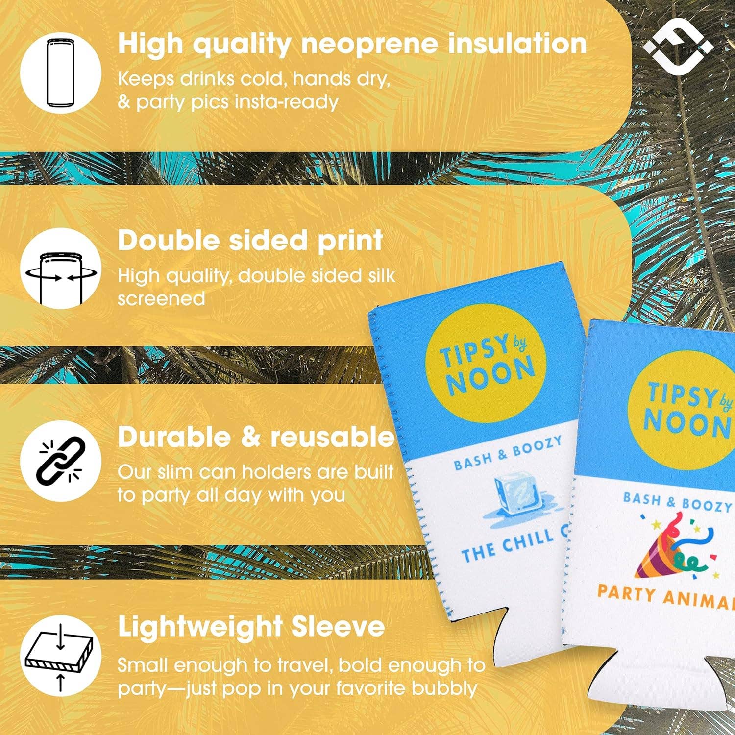 Make every sip unforgettable with this must-have slim can cooler set from Tipsy by Noon—perfect for beachside bashes and wild weekend getaways. Each set includes unique, cheeky sleeves for your whole bride squad, like “Maid of Dishonor,” “Party Animal,” and of course, “The Bride.” Made of thick neoprene to keep drinks cold and hands dry, these 16oz slim can sleeves are as durable as they are hilarious. They’re perfect as bachelorette party favors, bridesmaid gifts, or Instagram-worthy accessories.